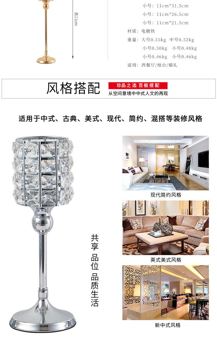 Hot European Crystal Candlestick Wedding Props Party Decoration Candle Cup Home Decoration Candlestick Table Setting